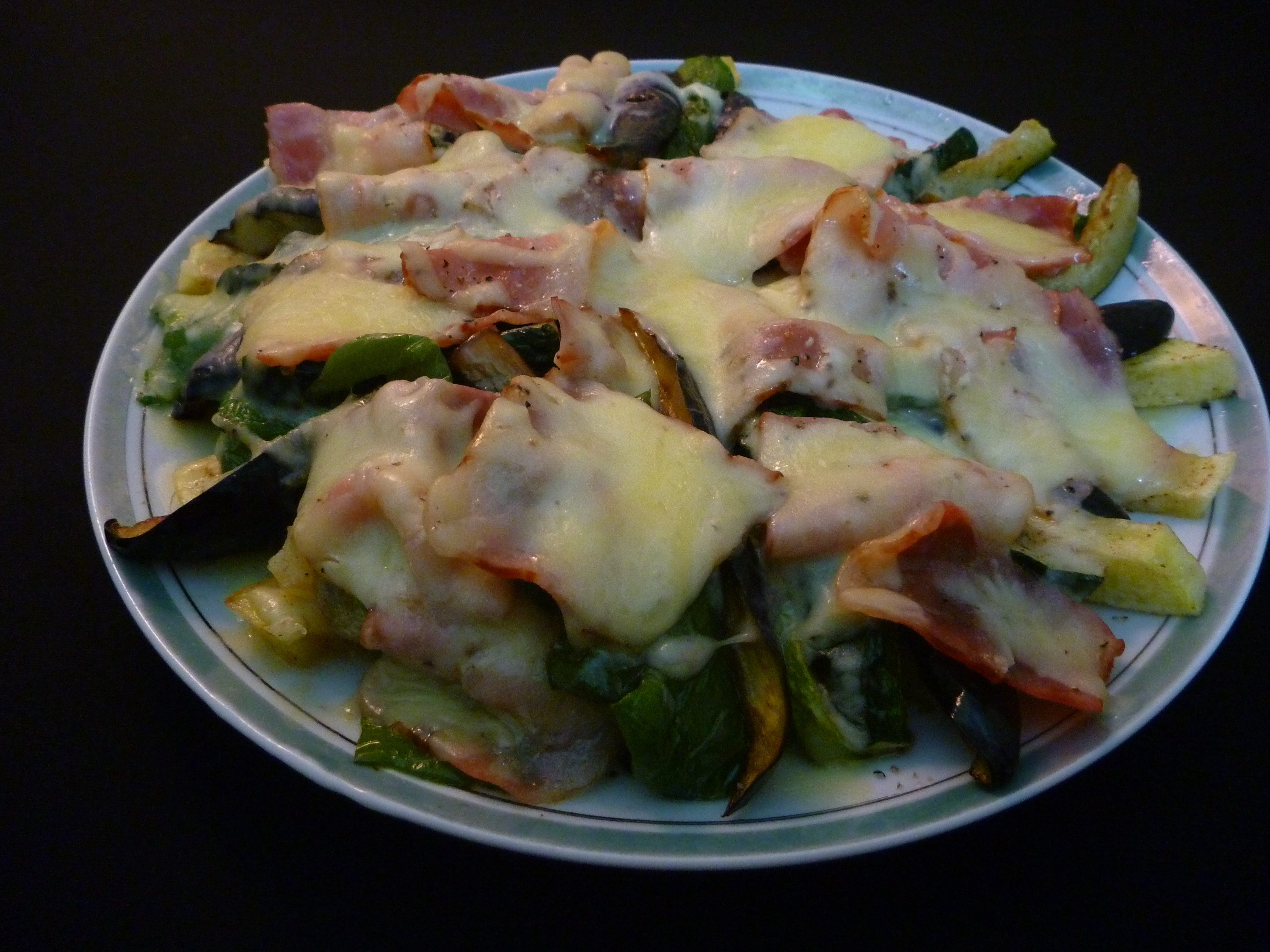 ベーコンと一緒に軽く素揚げにして、アツアツのうちにチーズをのせ、チーズがとろけるまでレンジにかけたそうです。今回は手作りのブドウ種油を使ったそうです。