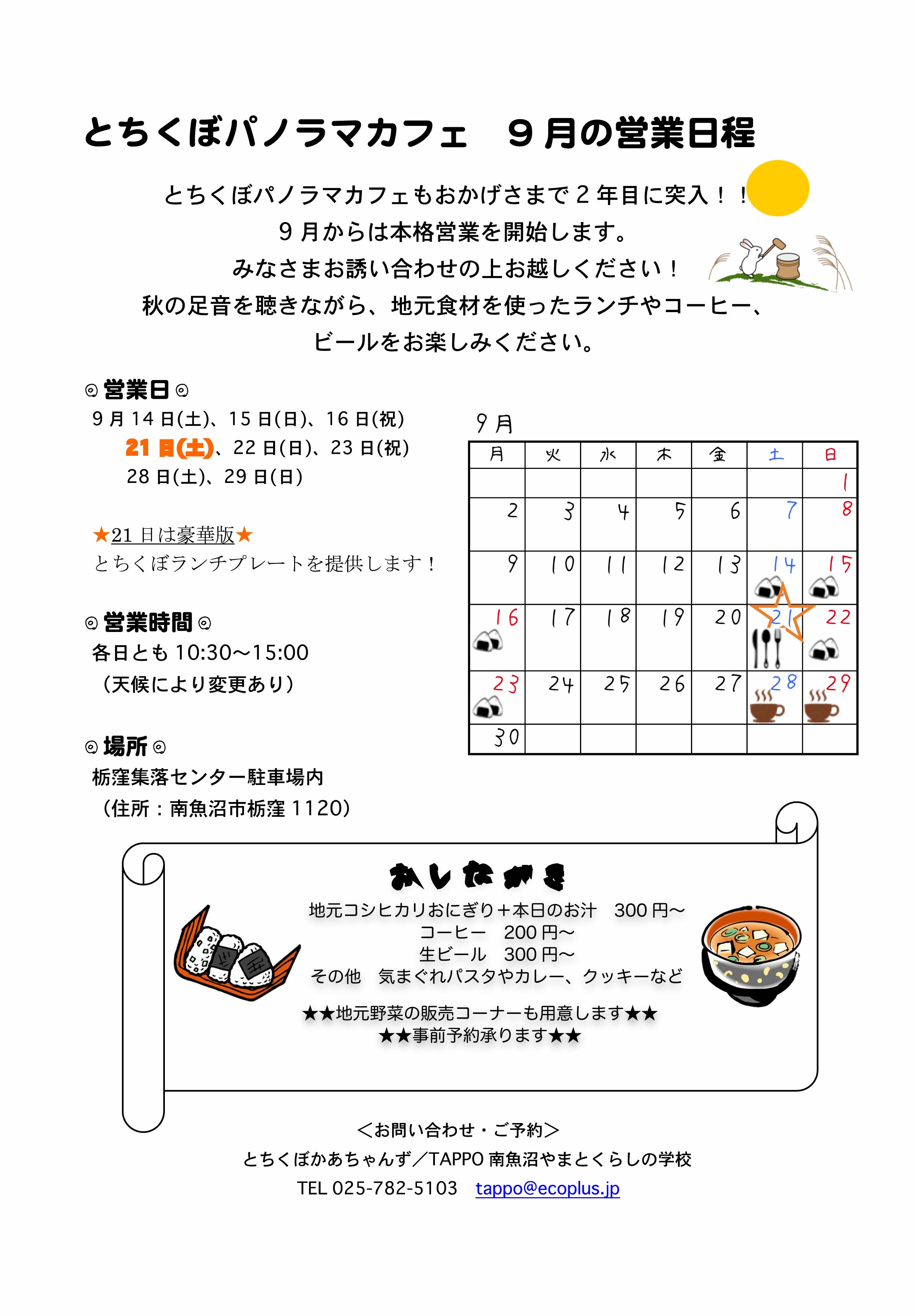 地元産のコシヒカリおにぎりや、きのこ汁、けんちん汁、コーヒー、生ビールを用意してお待ちしております。
