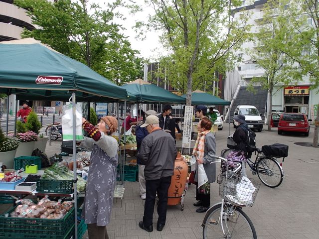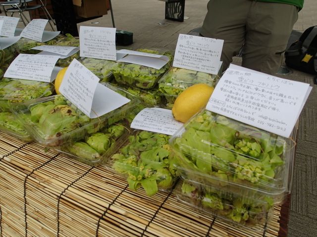 東京都墨田区の曳舟駅前広場で、4月20日朝から、栃窪のフキノトウを販売しています。各地の農家さんが、環境を意識して育てた野菜や果物が集まって、すてきな食の空間になっています。