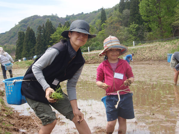 日程:田植え5月26-27日、田の草取り6月9-10日、あぜの草刈り7月7-8日、稲刈り10月6-7日、収穫祭11月3-4日